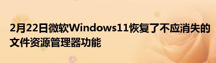 2月22日微软Windows11恢复了不应消失的文件资源管理器功能