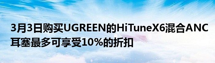 3月3日购买UGREEN的HiTuneX6混合ANC耳塞最多可享受10%的折扣